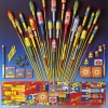 26 große und Super-Raketen mit farbenprächtigen Verwandlungssternen, wirbelnden Silberschwärmern und Goldpolypen, 2-Stufen-Effekt, Knatter- und Heul-Effekten, Kometenschweife und großen Schlußbuketts.